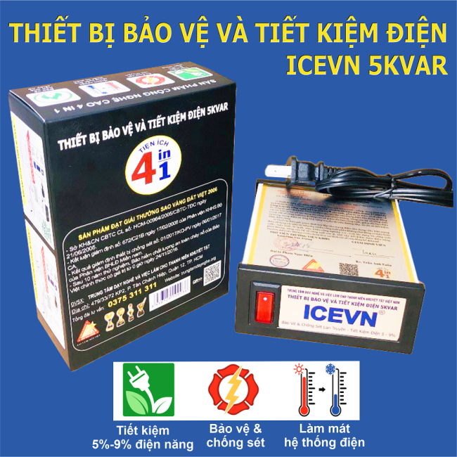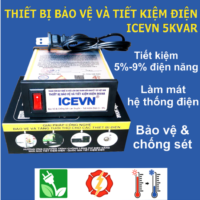 Thiết bị bảo vệ và tiết kiệm điện ICEVN 5KVAR là bộ tiết kiệm điện và bảo vệ các thiết bị điện gia đình hiệu quả.